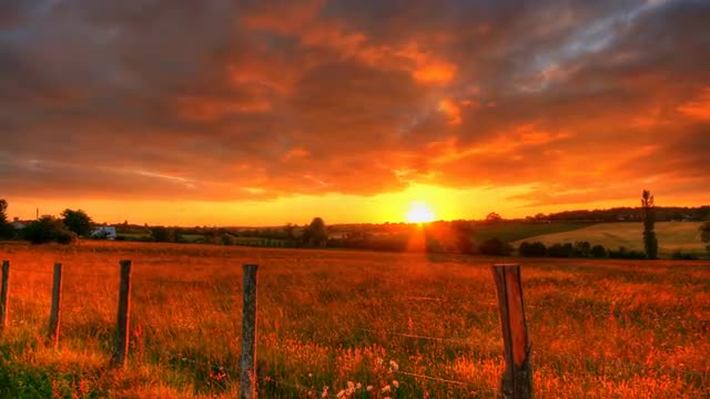 Slider shot of impressive sunset clouds passing over fields, 4K motion time lapse clip, High Dynamic Range Imaging (tone mapped from bracketed shots)