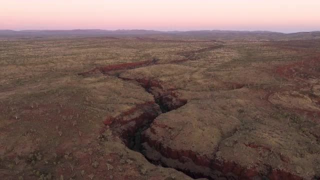 > Aerial shot of canyon in Iceland