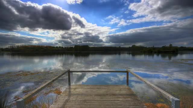 > Clouds reflecting in water at sunset, 4K HDR motion time lapse