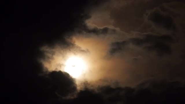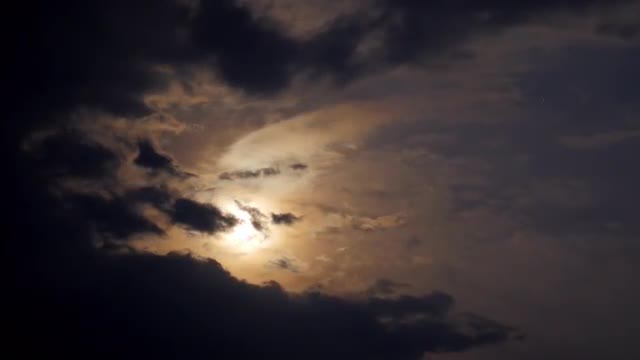 Moon with clouds passing by in the dark night sky, time lapse, cloudy, bright moon covered with clouds, highly detailed video