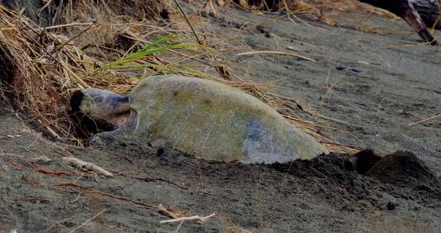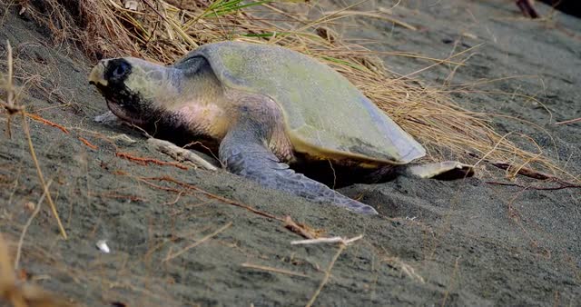 Leatherback Sea Turtle, Crouching Back Into The Ocean, Costa Rica