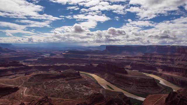 4k time lapse of sunlight leaking through passing clouds over the breathtaking Colorado river & Canyonlands of Utah