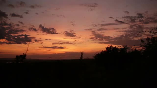 321030 - A colourful African sunrise with trees in foreground