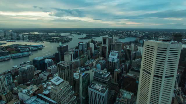 The business district of the city of Sydney and Hyde park shot as a holy grail day to night timelapse. Contact me for the Prores HQ file, this is a lower quality mp4 (easy uploads)