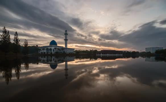A Time Lapse of A Mosque During Sunrise with Dramatic Cloud Movement. 3K