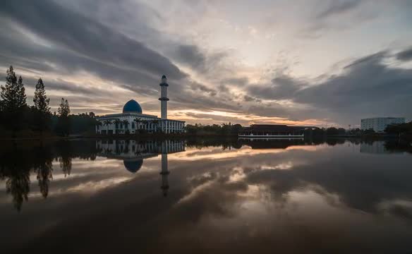 > A Time Lapse of A Mosque During Sunrise with Dramatic Cloud Movement. 1080p