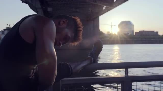 191248 - Bouldering Rock Climbing at Sunset, Slow Motion