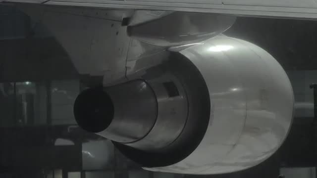 MOSCOW, RUSSIA - DECEMBER 25, 2017: Slow motion shot of de-icing Boeing 737-8AS of Utair airlines before night departure from Vnukovo Airport