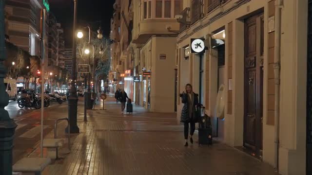 Walking in the street of night city. Valencia, Spain