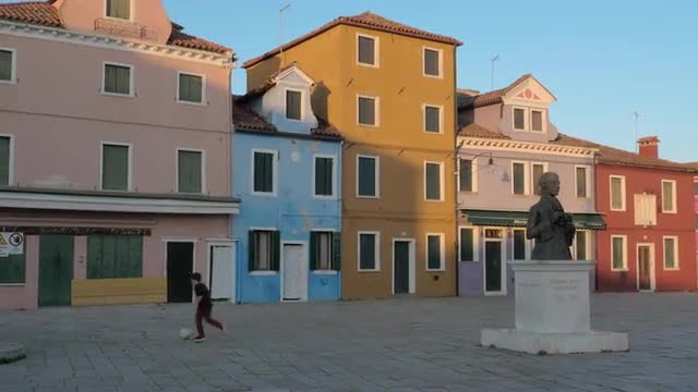 > Street with traditional painted homes in Burano, Italy