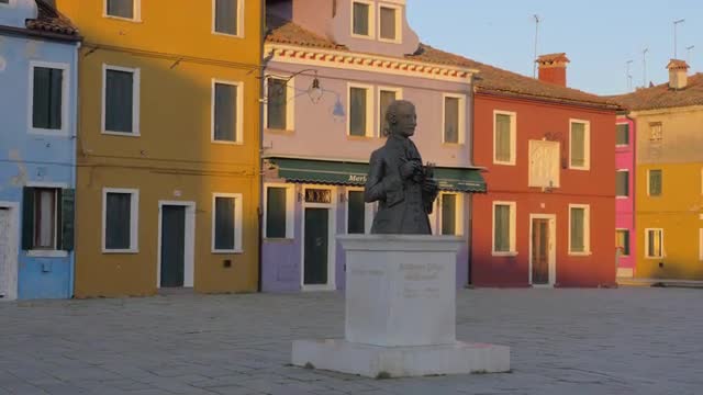 Street with traditional painted homes in Burano, Italy