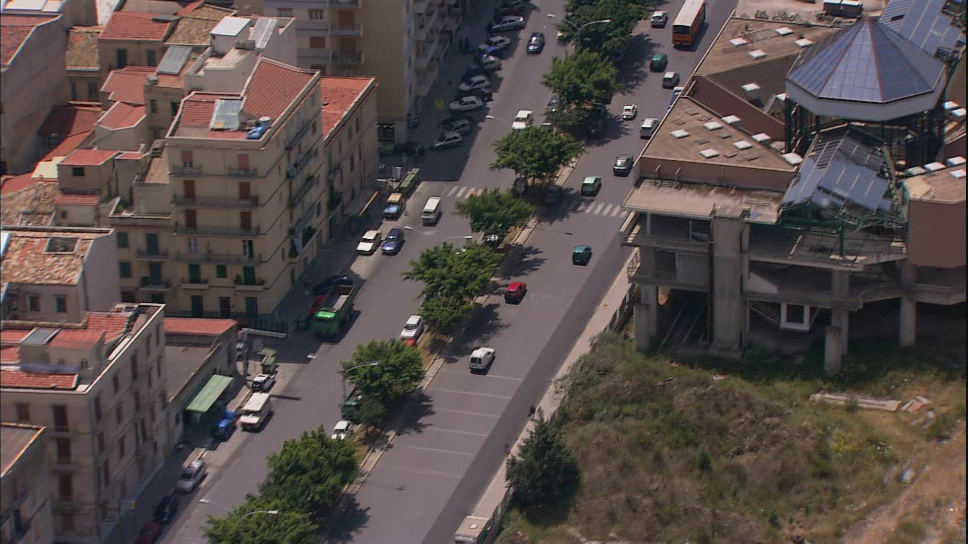 Slow motion shot of unidentified motorcyclist driving through the narrow alleyway in Palermo, Italy