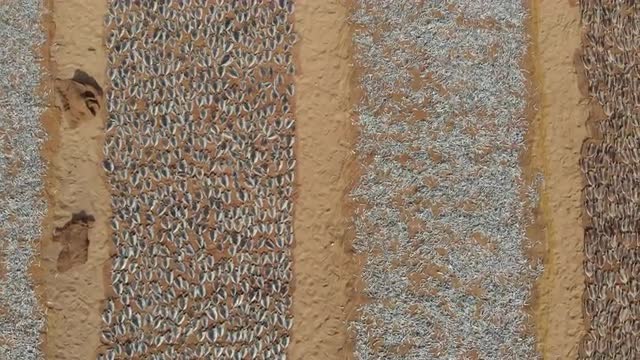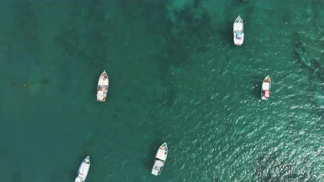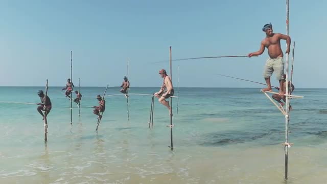 Aerial view of beautiful seascape with fisherman boats in Sri Lanka