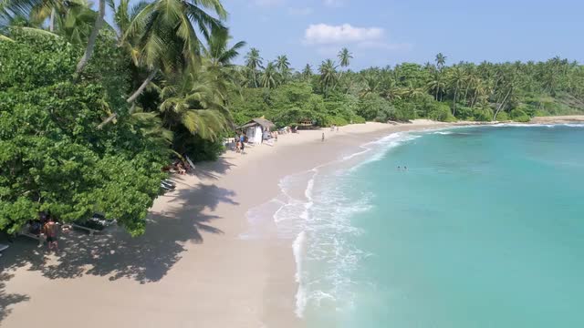 Aerial view of tropical beach with palm trees in Sri Lanka