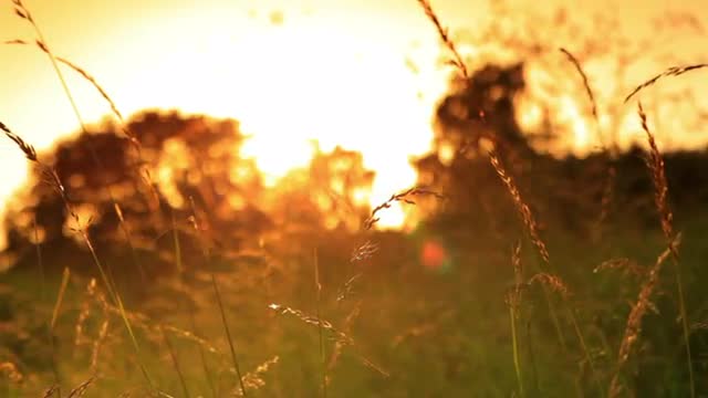Evening light shines through yellow wildflowers (Arrowleaf Balsamroot) As the wildflowers blow in the wind and move, a crips starburst / sunstar shines through