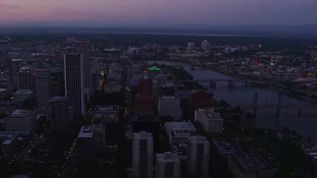 Fog moves through the trees in Portland, Oregon at night. Shot from Pittock Mansion.