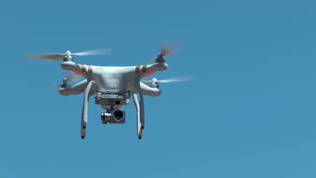 375980 - Drone flying against blue sky in slow motion