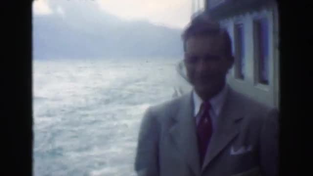 571519 - 1949: Formally dressed happy man cruise ship transport on big river. NICE, FRANCE