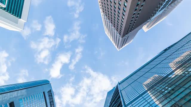 Timelapse footage of clouds over Shiodome office district, Tokyo, Japan