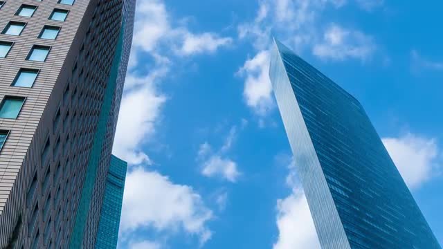 Timelapse footage of clouds over Shiodome office district, Tokyo, Japan