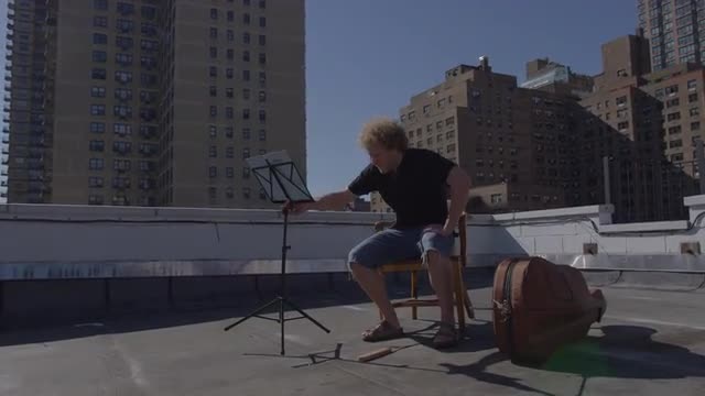 1073940 - Behind cellist playing on Brooklyn rooftop