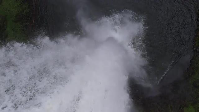 Closeup Slow motion footage of dramatic water splashing at a waterfall in the Columbia RIver Gorge, Pacific Northwest.