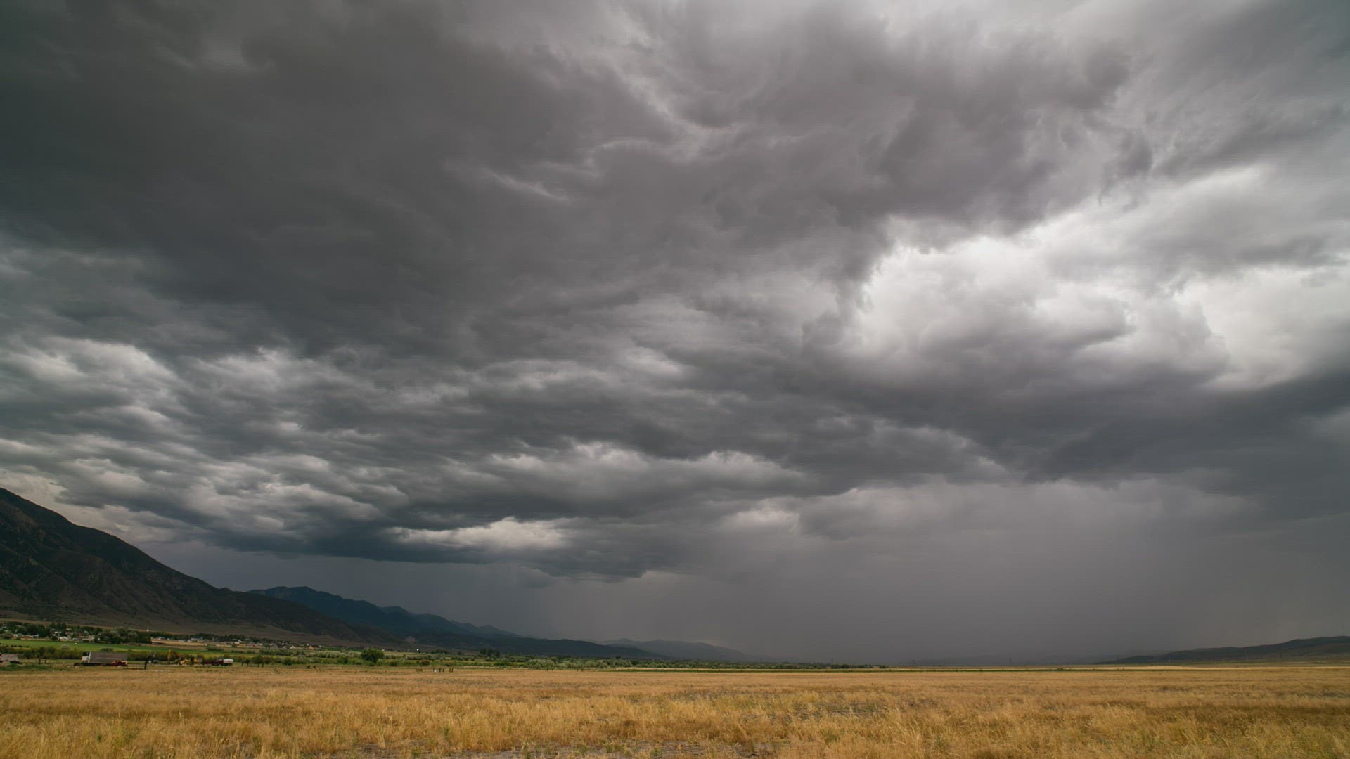 Vibrant red clouds during sunset after severe storm in Oklahoma