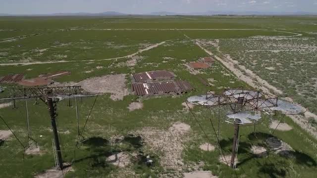Top down view of the Delta Solar Ruins site in Utah as the project wastes away and it damaged.