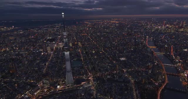 Tokyo, Japan Shinjuku skyline cityscape at sunset with silhouette view of apartment buildings and golden sunlight sun behind skyscrapers