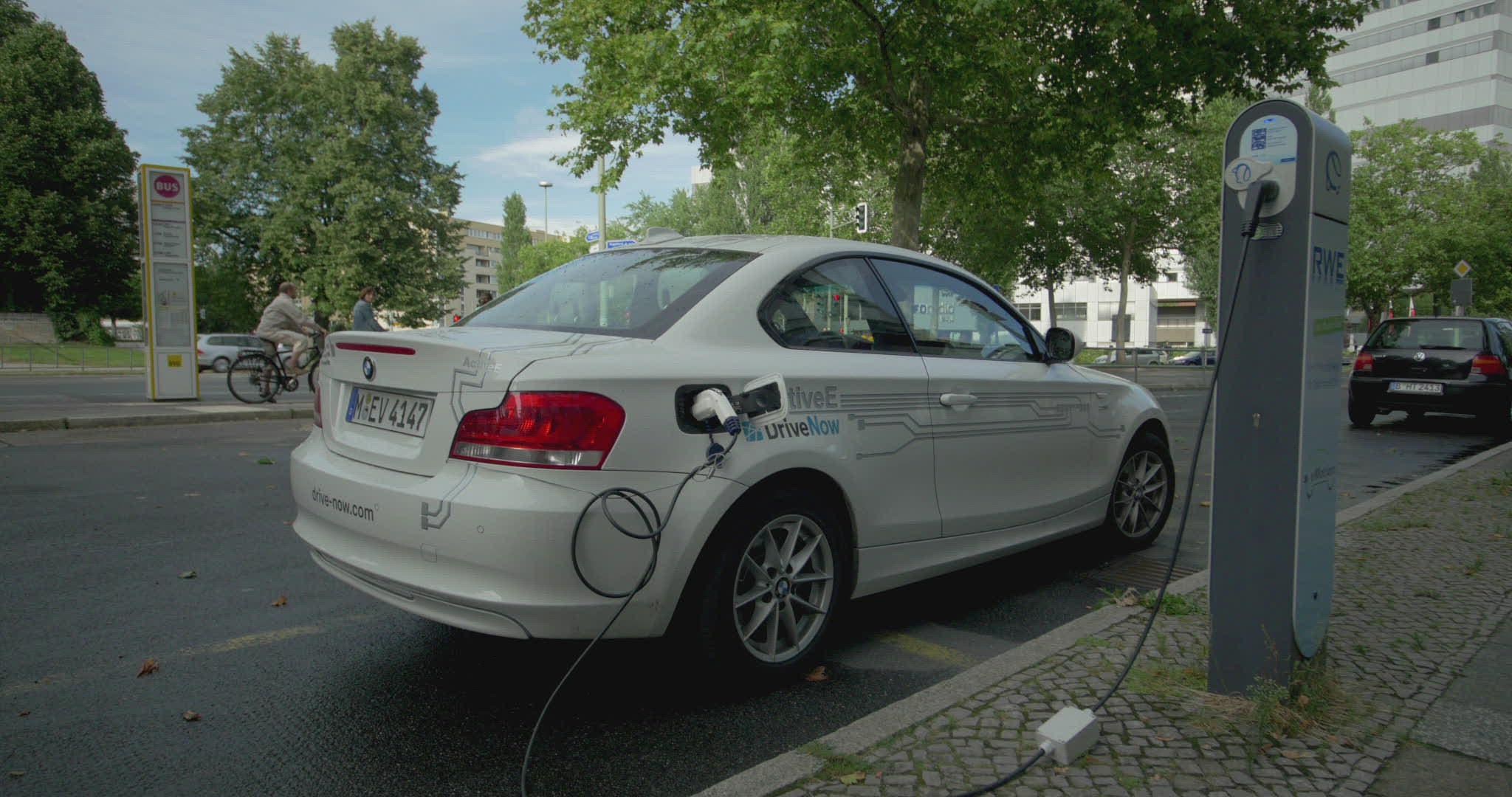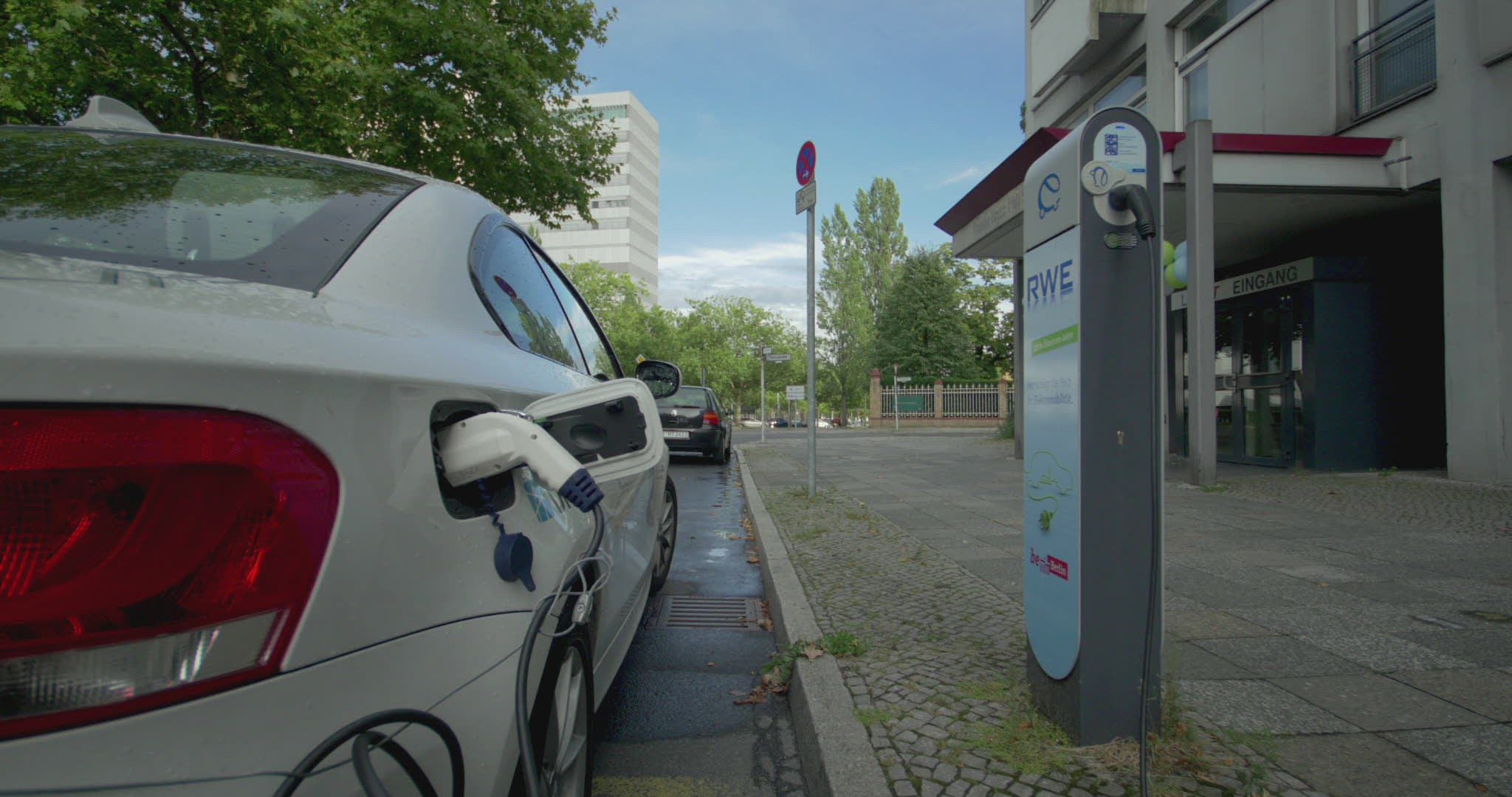 > Electric Car Charging At A Charging Station (evening version, v2)