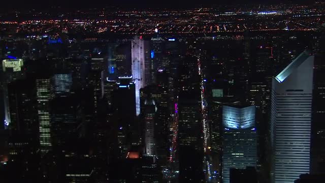 > New York City Aerial Skyline at Night