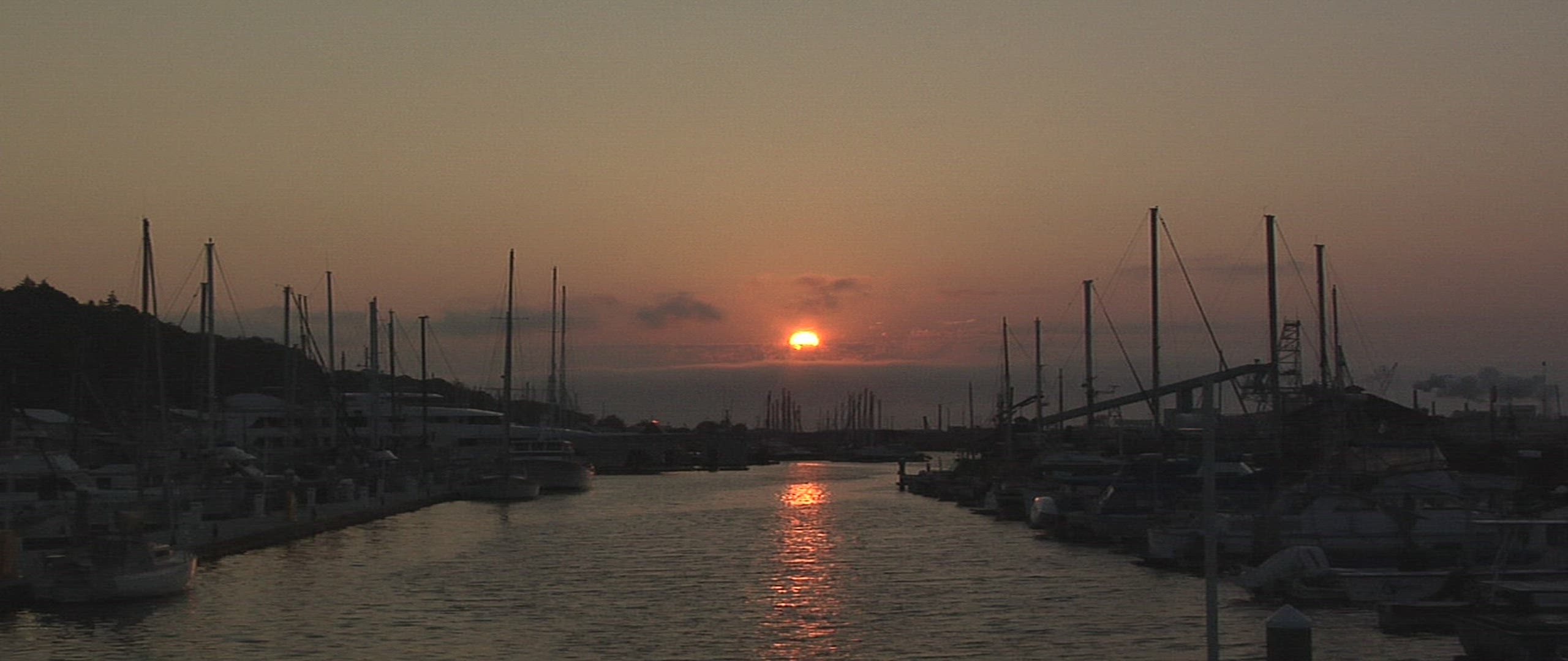 > Wide aerial shot of sunlight reflecting off ocean