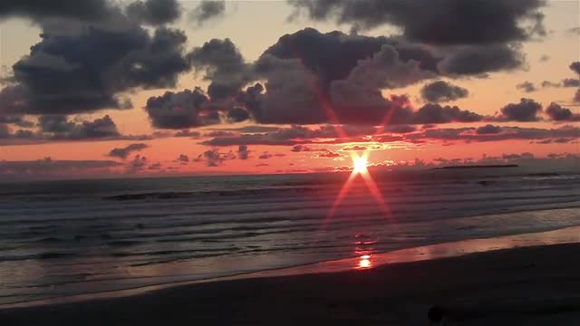 Wide aerial shot of sunlight reflecting off pacific ocean