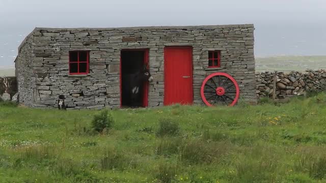 Sunset timelapse of a red barn in an orchard near Hood River, Oregon with Mount Hood in the background