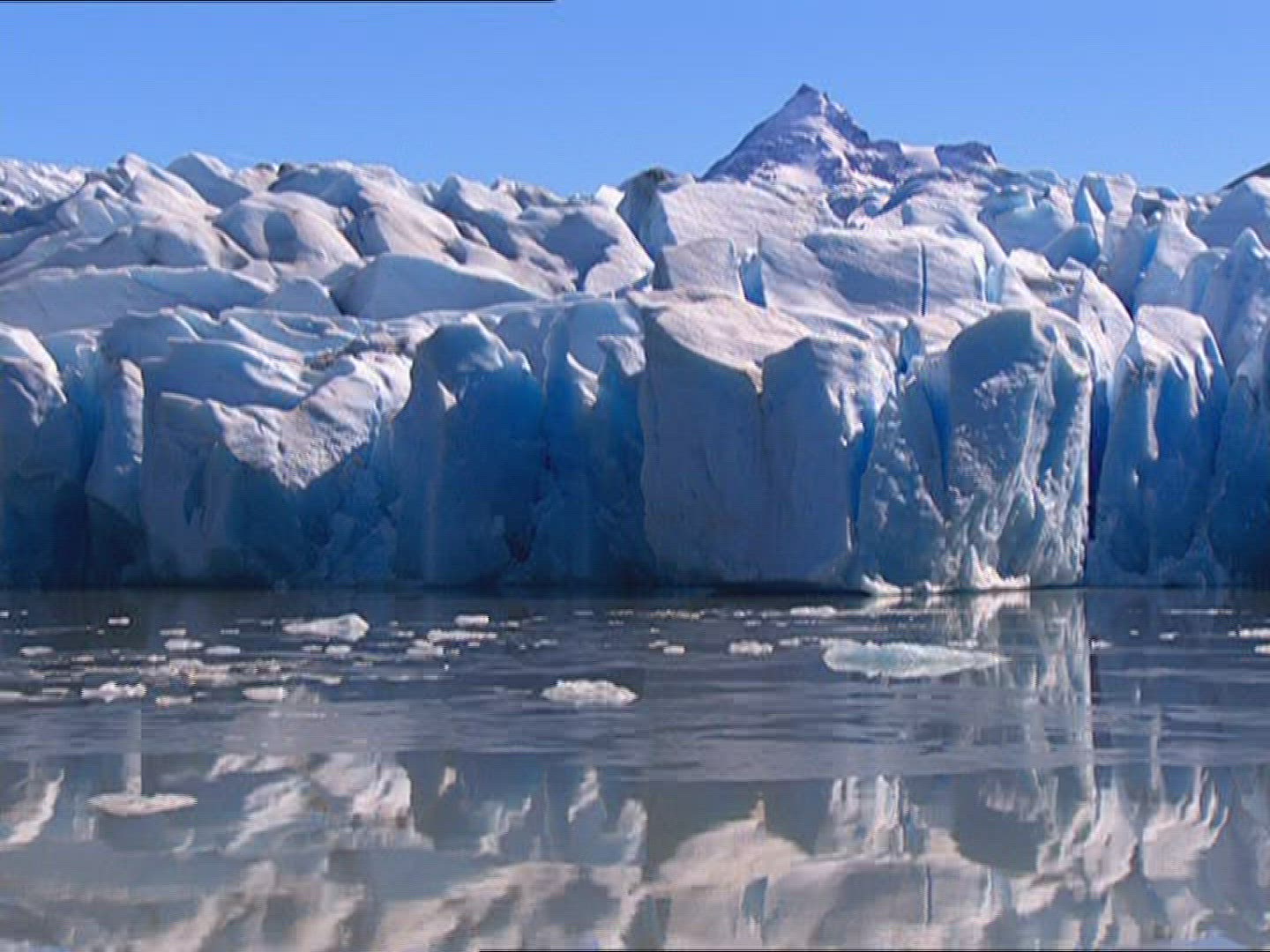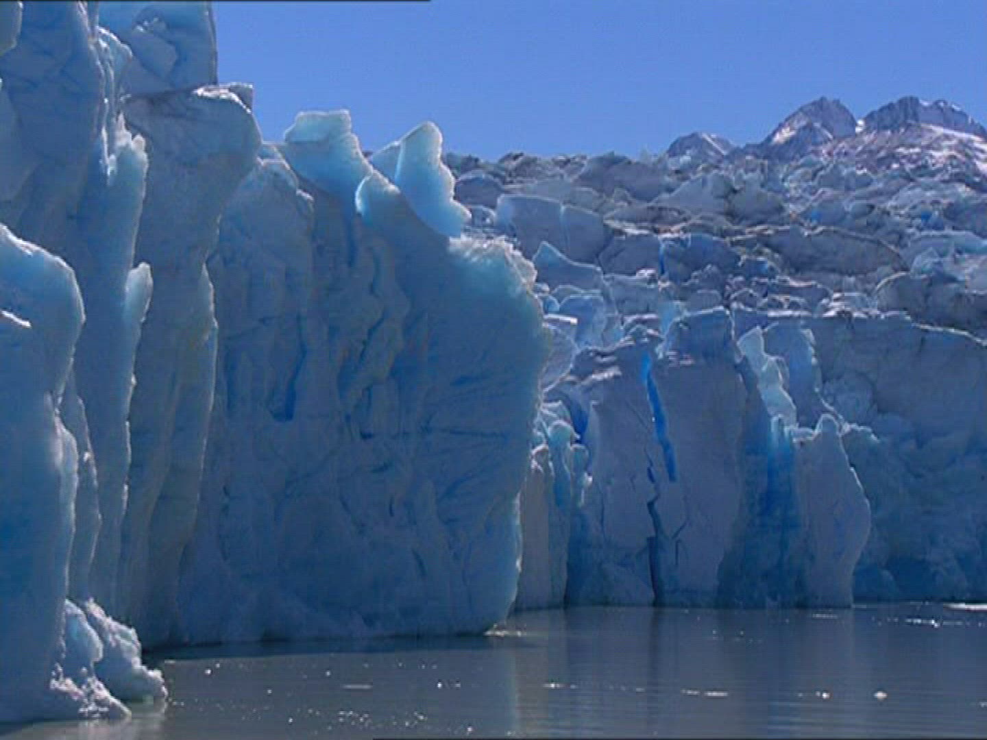 > Torres del Paine, Chile, Timelapse - The Grey Glacier and the lake in the Park during the day