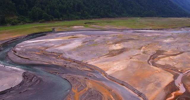 low-altitude flight on a cloudy day, in the delta of the river that feeds the waters of Lake Caburgua