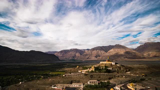 Moving clouds shadow light over a himalayan valley, Ladakh, India 8k.