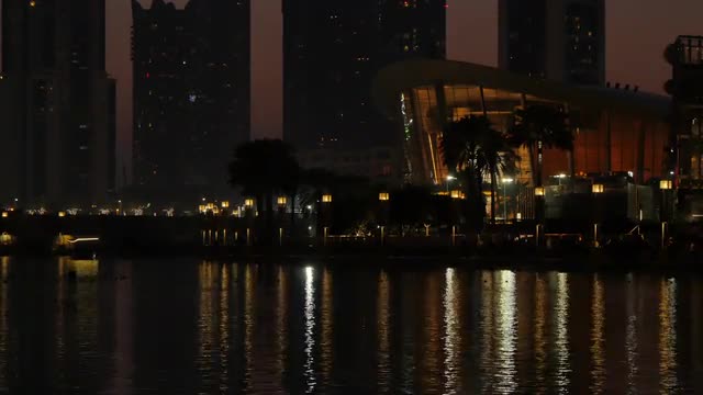 935312 - Dubai Opera House from Burj Khalifa Lake at dusk in Downtown, Dubai, United Arab Emirates, Middle Ea