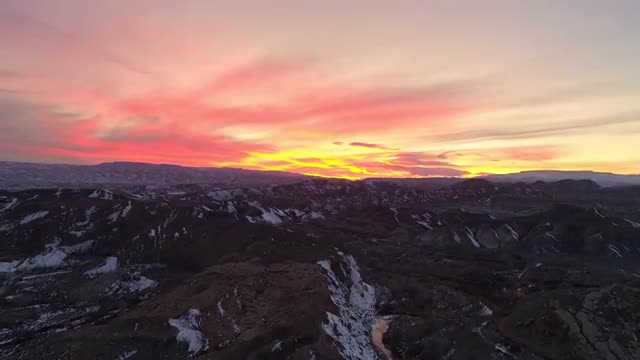 Panning aerial over forest with various colors during autumn in Utah through Santaquin Canyon.