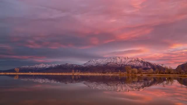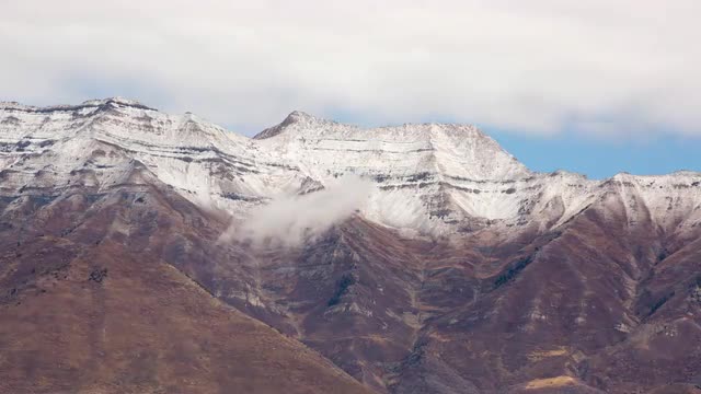 Golden Hour Time lapse of autumn clouds rolling over Mount Timpanogos near Provo, Utah