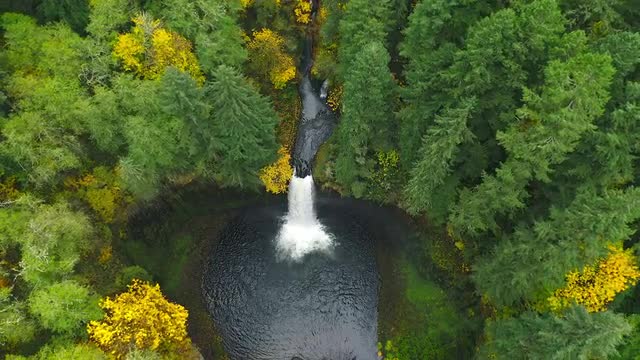 Oregon Waterfall Aerial with Fall Color