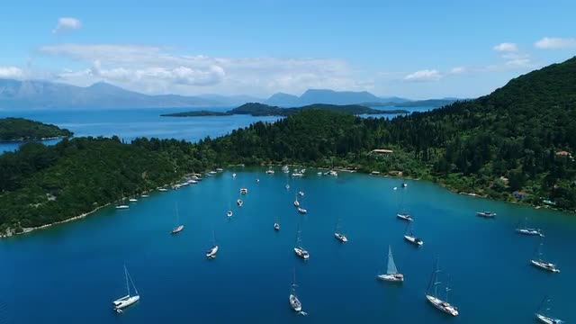 > Overhead view of yacht open sea.