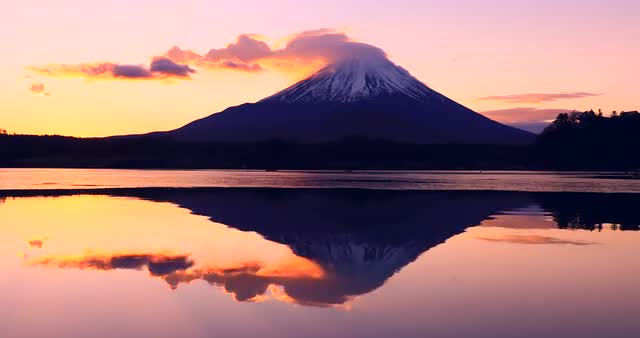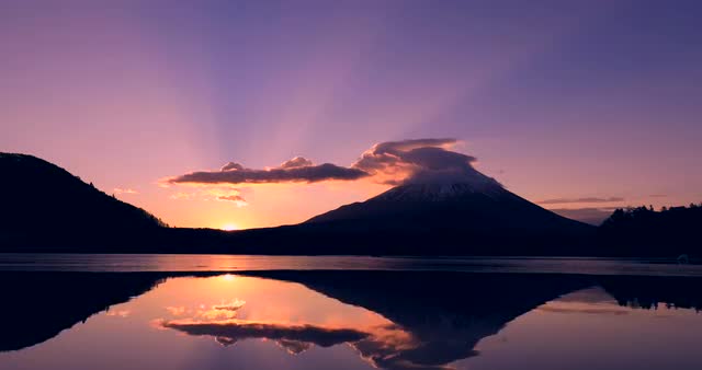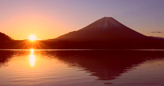 > View of Mount Fuji at sunrise, Yamanashi Prefecture, Japan