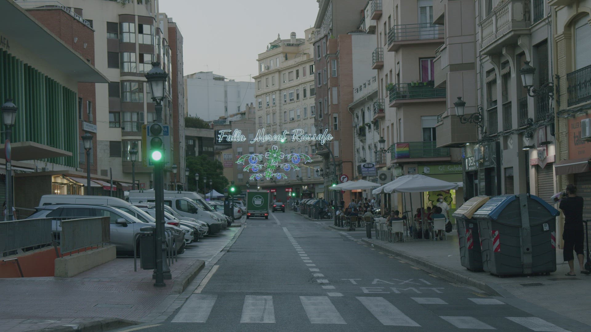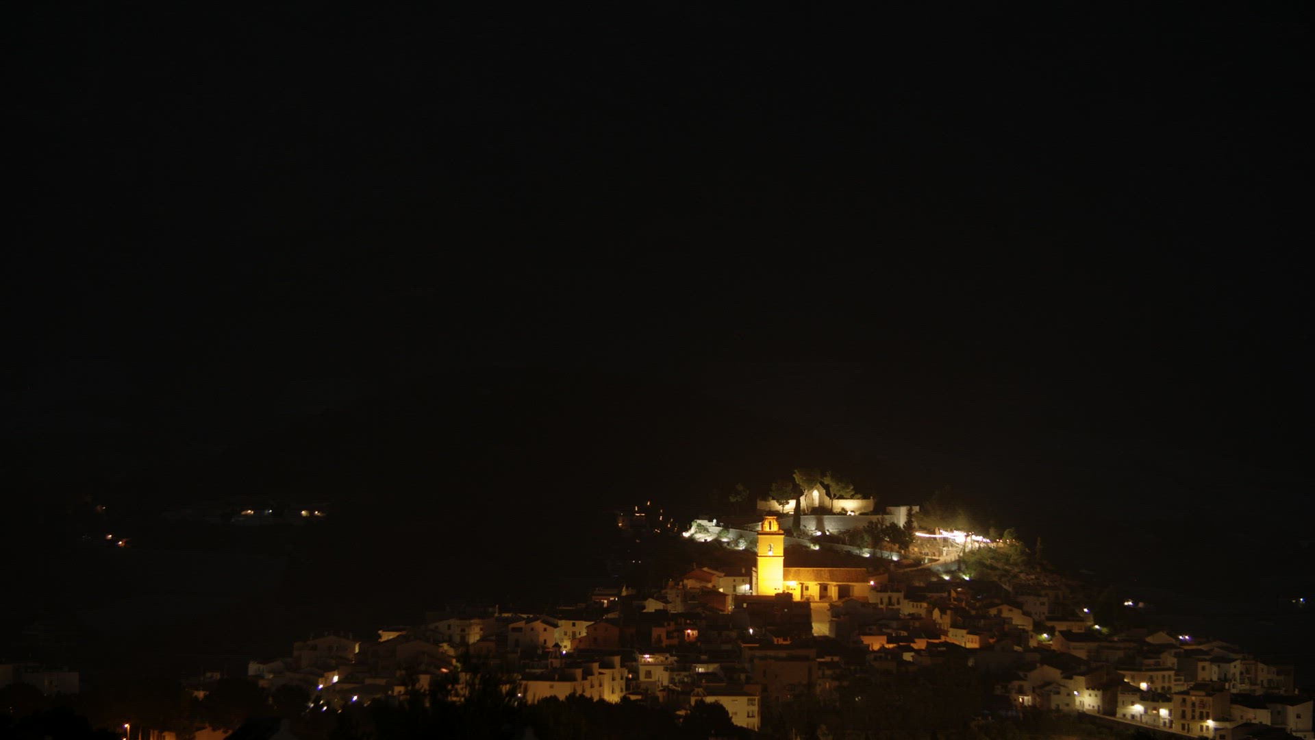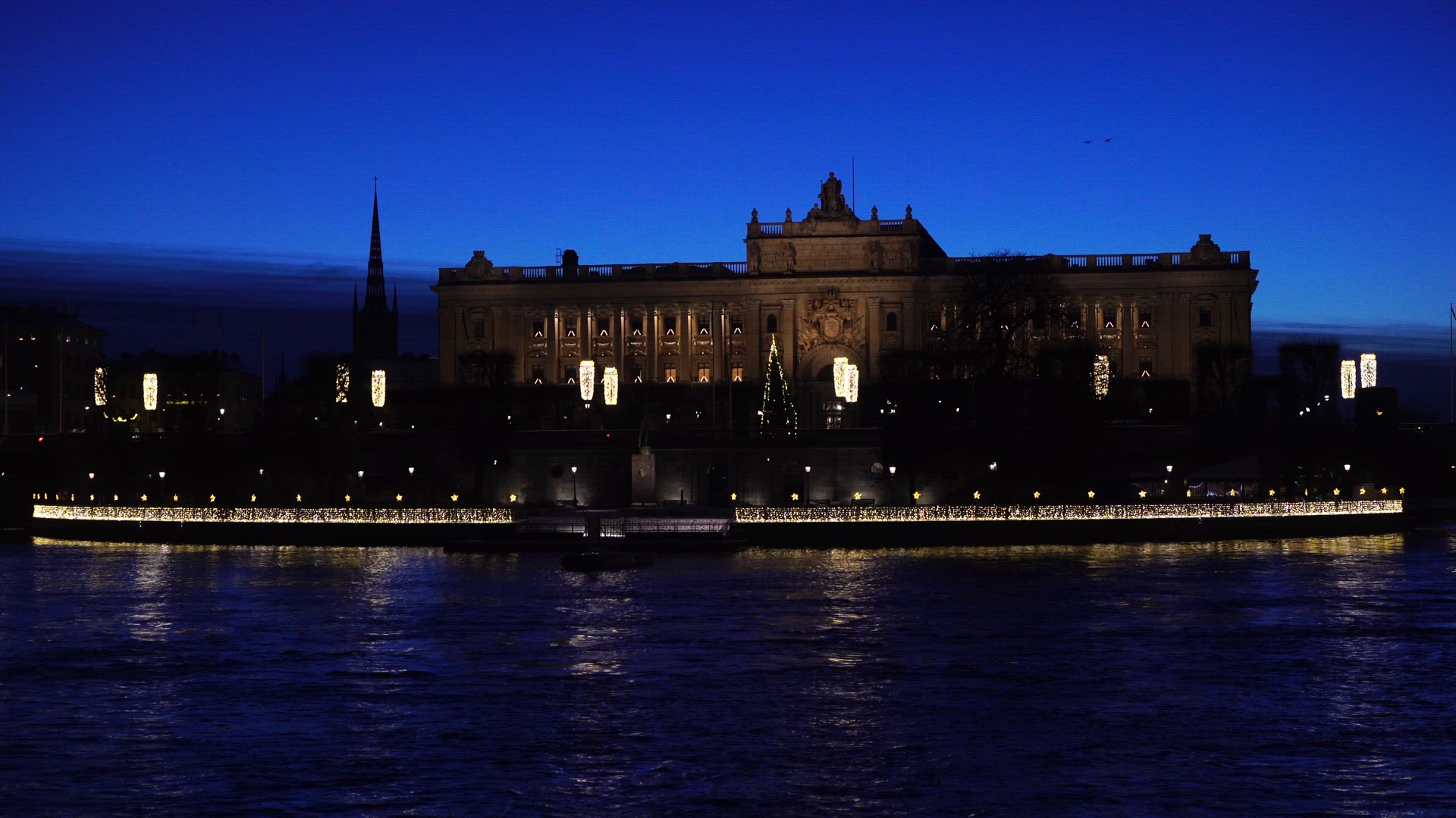 > Christmas Eve night candle lights paper bags row loop cinemagraph