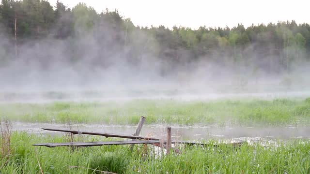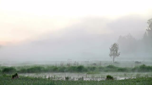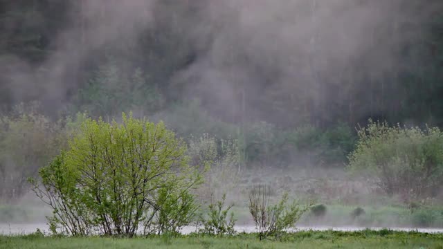 SLow Motion Frosty Morning Mist Fog Grass