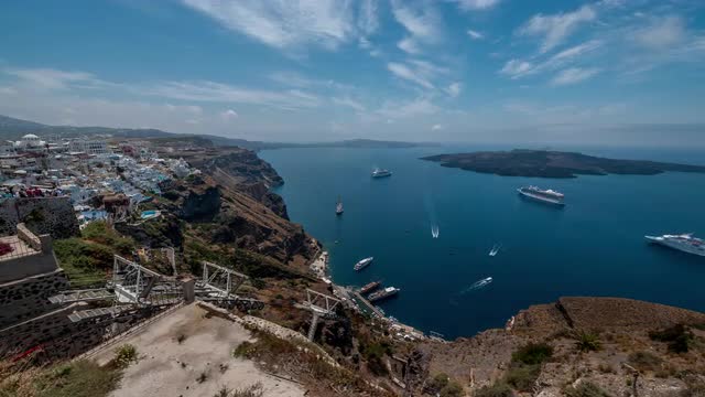 Timelapse shot of city waterfront. View to the cable car traffic and quay with vessels