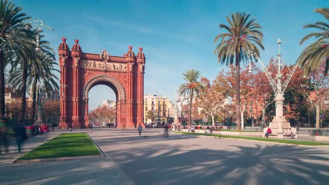 Slow motion steadicam shot of cheerful loving couple walking in the street of Valencia, Spain