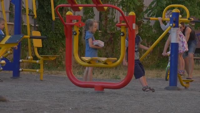 Active child spending leisure outdoor and having fun at playground overcoming obstacles