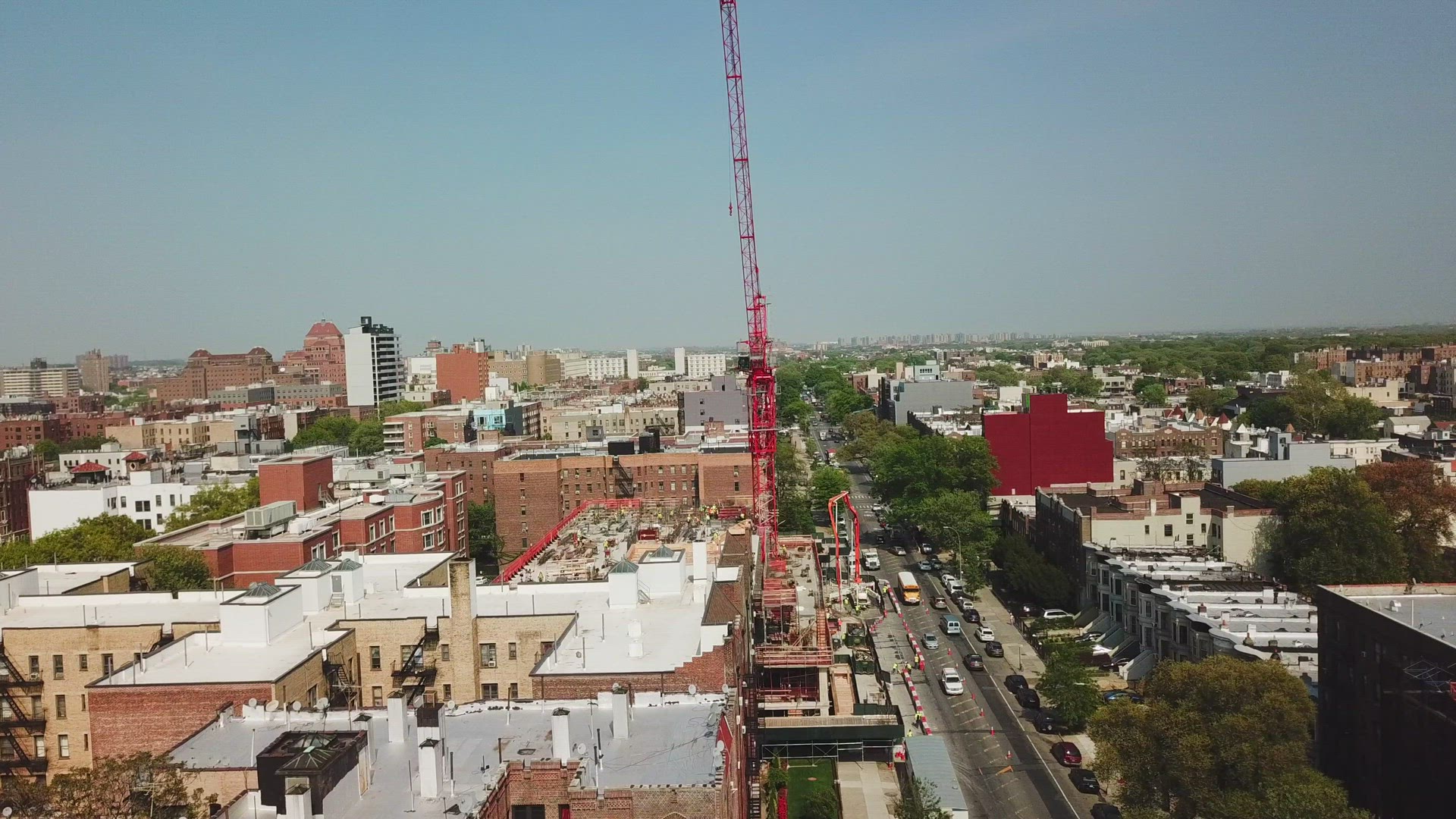 An aerial view of a construction crane lying on the ground
