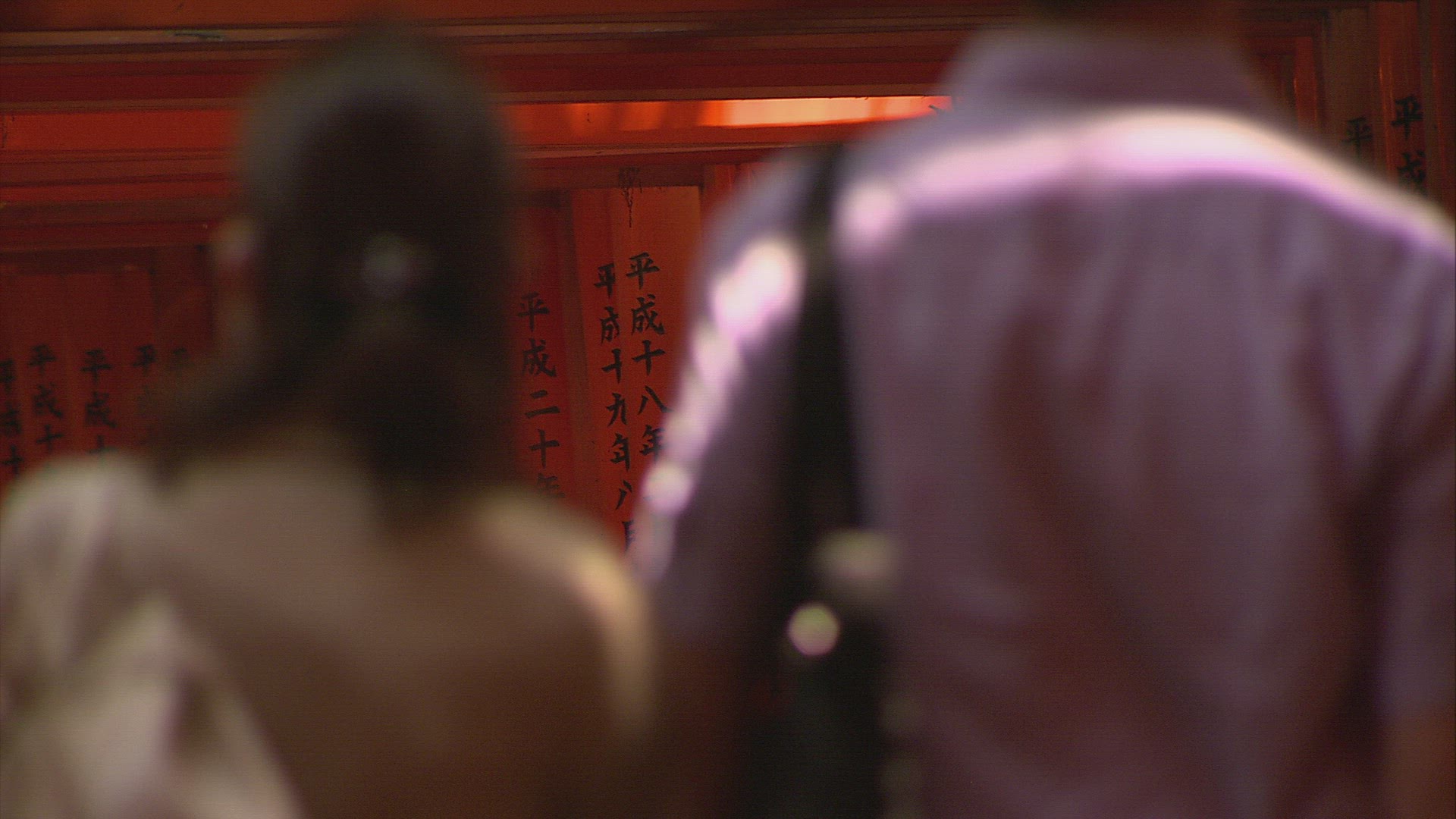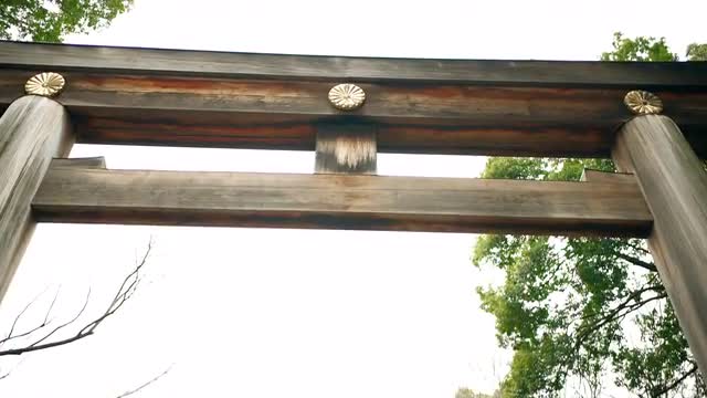 Slow motion roll of woman walking in yoyogi park in Meiji shrine, Tokyo Japan